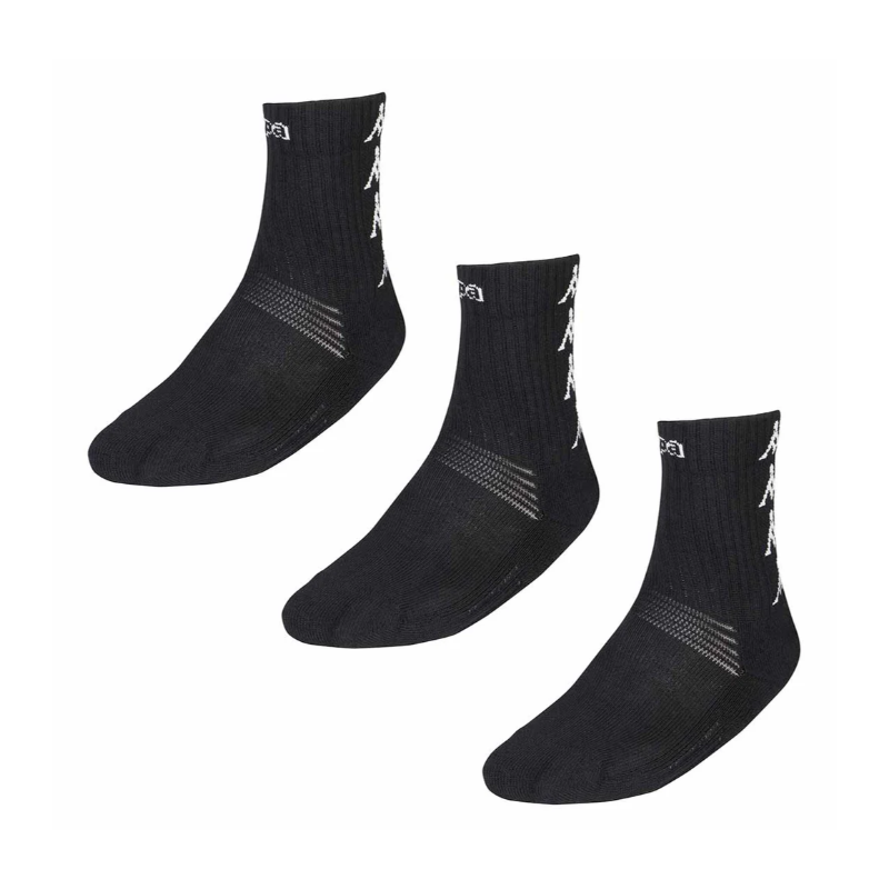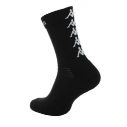 Chaussettes de match et d'entraînement 75% coton, 23% polyamide, 2% élasthanne. Vendu par lot de 3 paires de la même taille et de la même couleur, Kappa sur le tibia et Banda sur le mollet.